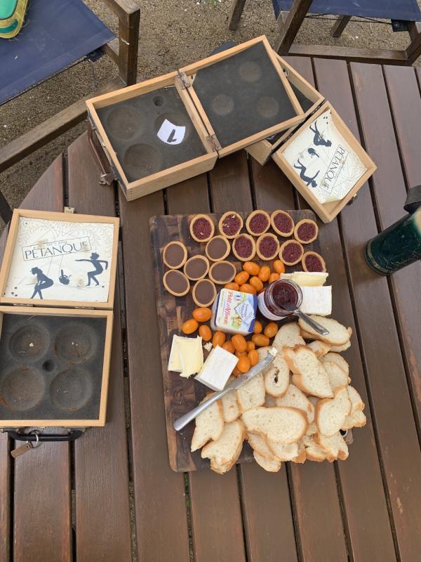 Also enjoyable were some very tasty French nibbling morsels. And playing between the community garden plots and gnomes added an extra highlight