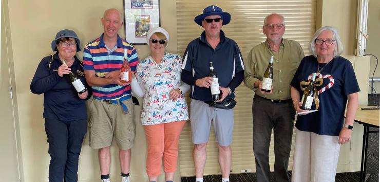 The teams are usually pairs but sometimes triples depending on numbers. At the start of the afternoon, teams are randomly drawn for all 3 games by computer. This ensures you don't team up with the same person twice though occasionally you may play against the same person more than once. Players are encouraged to play all 3 games otherwise it upsets the draws. At the end of the day prizes of bottles of wine are awarded to both male and female winners, the number of prizes depending on the number of players. Saturdays are essentially the same relaxed games as Wednesdays but usually with more players and with prizes.