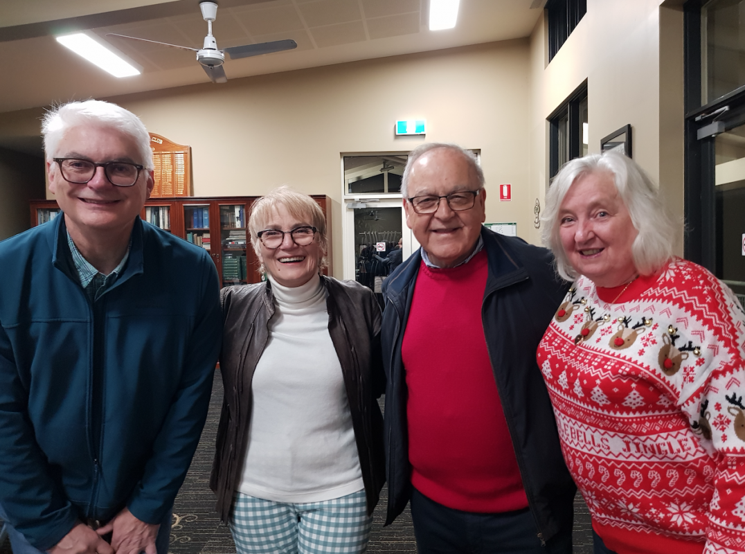 Congratulations (again)and thank you to Kathy and crew - Noella, Jude, Faye, Mary, - Elaine, Vicki M, Noella & Jude for the deserts and JP for the roaring, crackling log fire, Doug ,Judes Husband for the 3D Table decorations, and all those that helped set up, wash up, clean up & pack up.