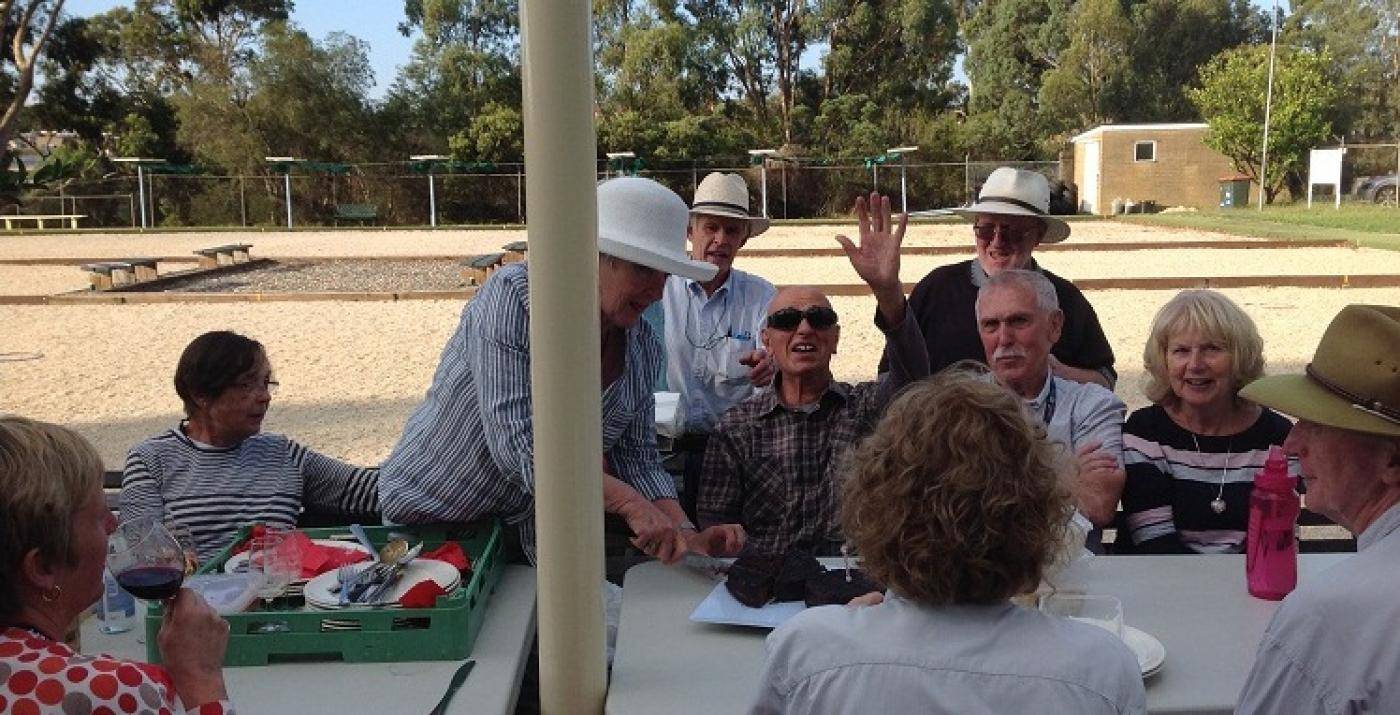 We usually celebrate on New Year's Day, BBQs on Australia Day or Anzac Day, maybe a Melbourne Cup day. We now have a program of special events such as a theme dinner, wine tasting or trivia night. There are happy hours every month. There are two friendly competitions, the Jolly Roger against Mt Macedon and the Surf & Turf trophy against St Andrews Beach. Sometimes we play with our colleagues at the Council who look after us so well. It doesn't take much to have a good reason for a social match.