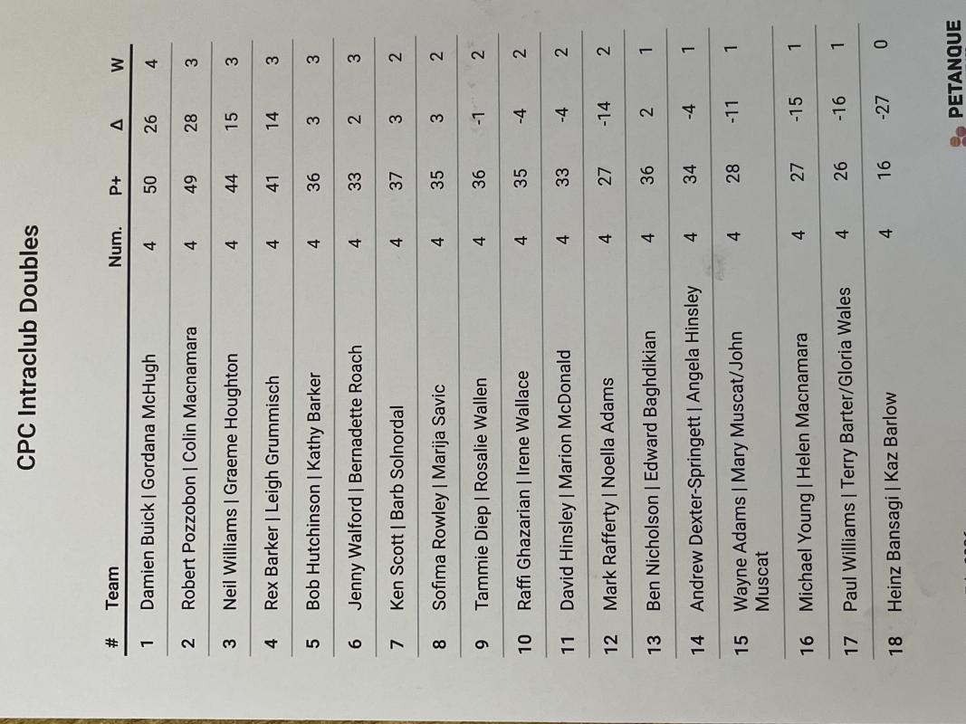 INTRACLUB 12th. April 2025 Results