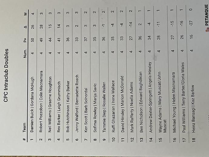Followed by Robert & Colin. With Neil & Graeme coming in a strong 3rd.