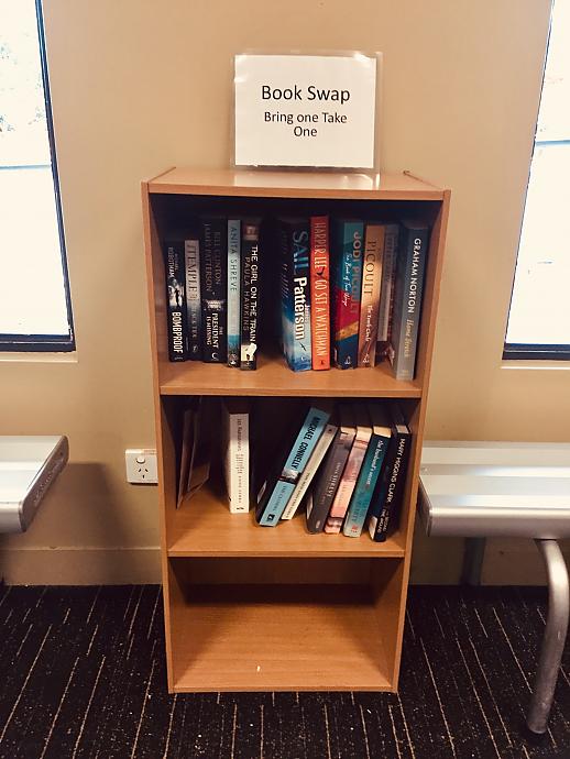Located in the Club rooms - window side, is the new library installation.