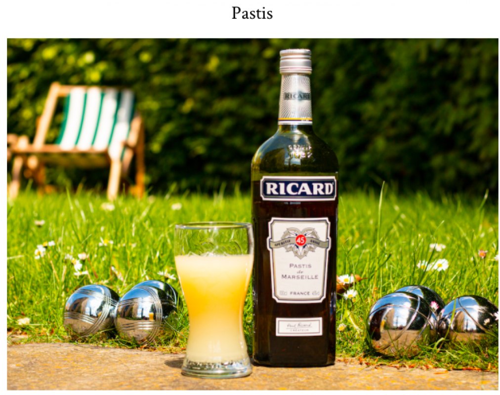 By legal definition, pastis is described as an anise-flavored spirit that contains additional flavor of licorice root, contains less than 100 grams/l sugar, and is bottled at a minimum of 40% ABV (pastis) or 45% ABV (pastis de Marseille).