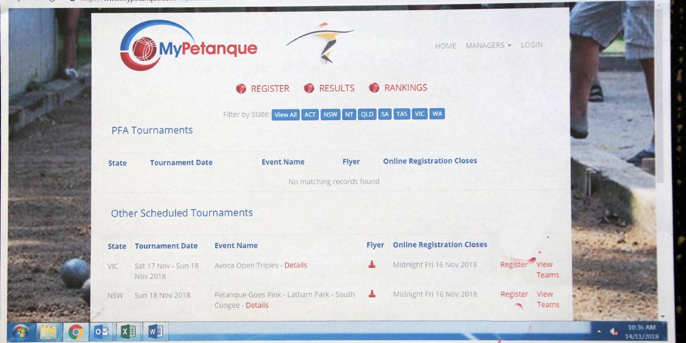 To play in a competition you need to register your team. You can usually do this in advance. Sometimes you can leave registration to the day of play. Check the cut off date carefully. Most competitions have a moderate registration fee of around $20 p.p. most of which goes towards providing cash and kind prizes for the different categories of players.All competitions are registered via the My Petanque website www.mypetanque.com