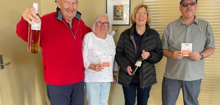 The teams are usually pairs but sometimes triples depending on numbers. At the start of the afternoon, teams are randomly drawn for all 3 games by computer. This ensures you don't team up with the same person twice though occasionally you may play against the same person more than once. Players are encouraged to play all 3 games otherwise it upsets the draws. At the end of the day prizes of bottles of wine are awarded to both male and female winners, the number of prizes depending on the number of players. Saturdays are essentially the same relaxed games as Wednesdays but usually with more players and with prizes.